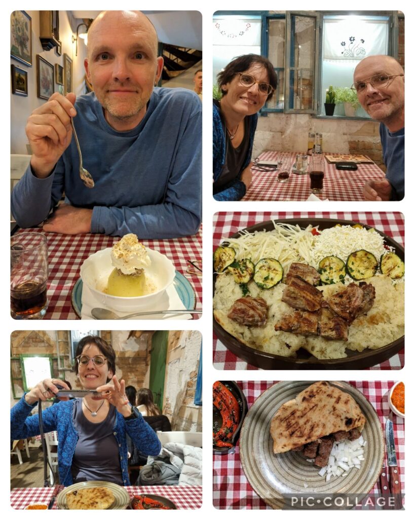 Im Anschluss gehen wir noch bosnisch essen. War mega – sowohl das Essen als auch das Ambiente. Man hatte das Gefühl, in einem Innenhof zu sitzen.