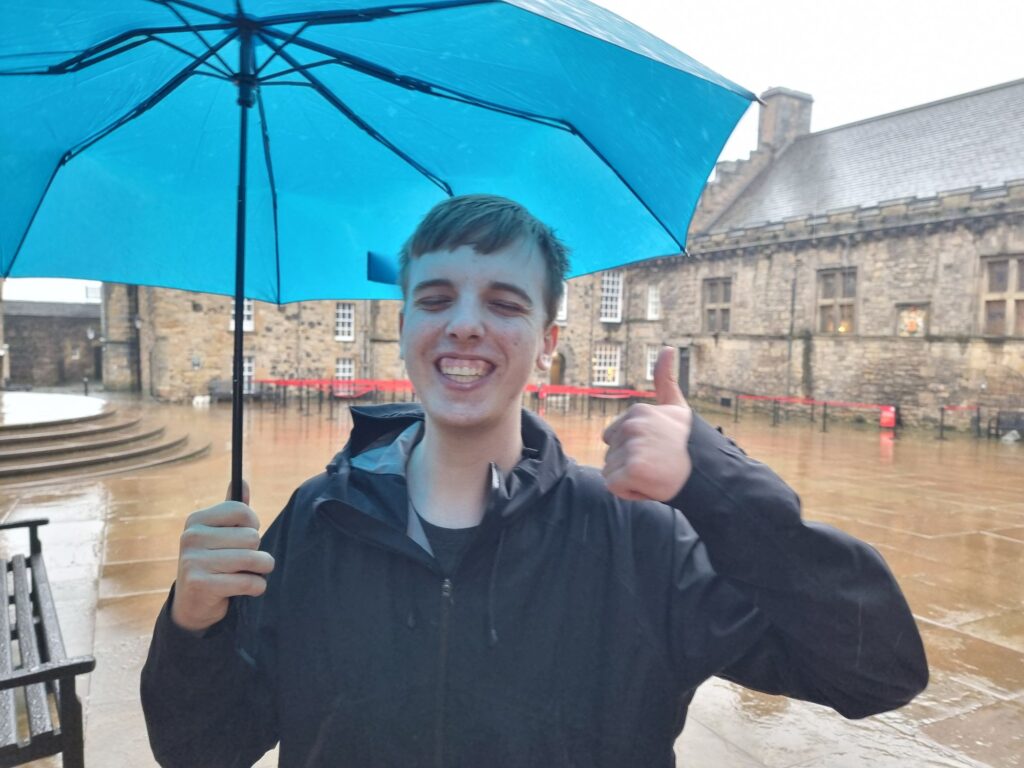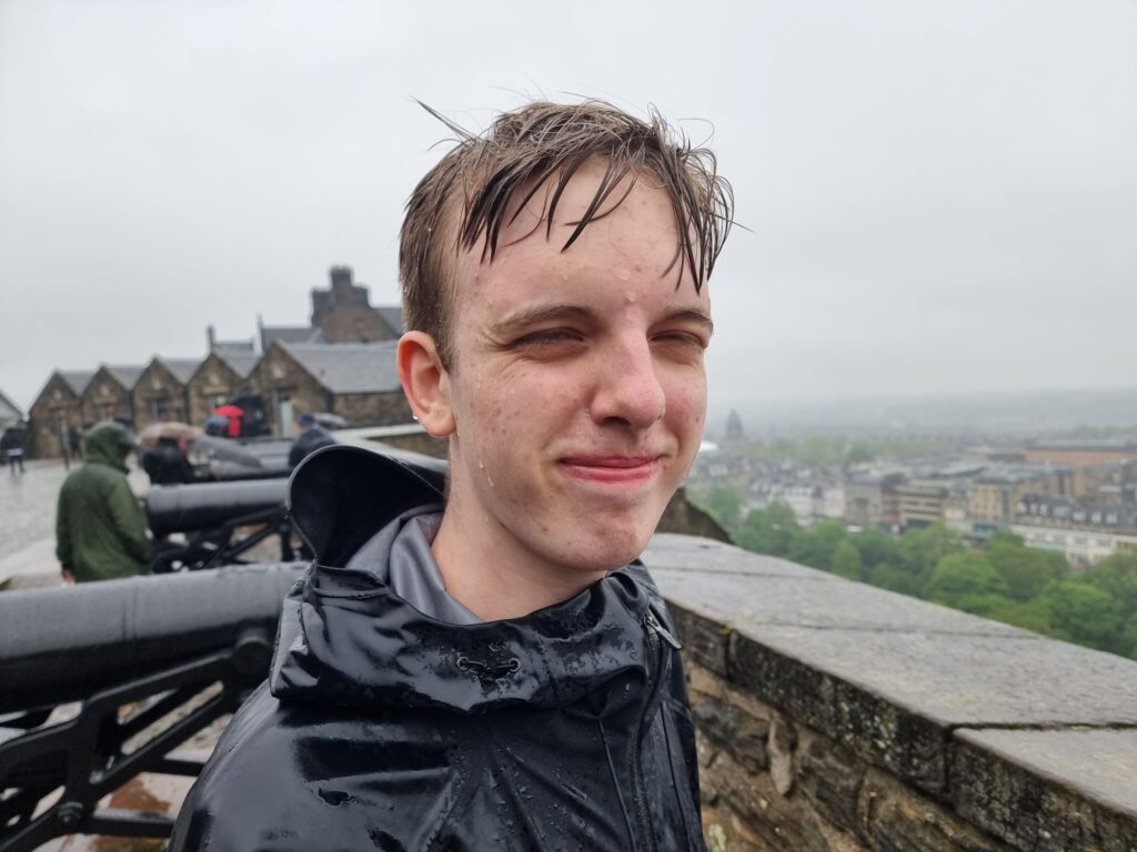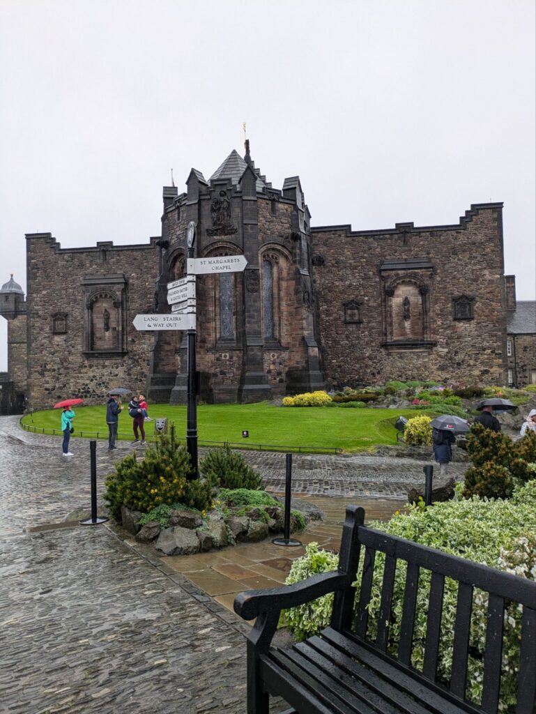 Nachmittags waren wir dann zuerst eine Kleinigkeit in der Stadt essen und dann im Edinburgh Castle, wir hatten die letzten Karten zuvor online ergattert. Philip und Anja liefen mit Audioguide durch die Festung, Johann und ich haben einfach überall die Schilder gelesen. Und das Wetter: Es goss die gan-ze Zeit, was der Stimmung aber keinen Abbruch tat.