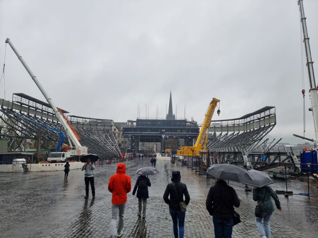 Paradeplatz vor der Burg. Die Tribünen werden abgebaut.