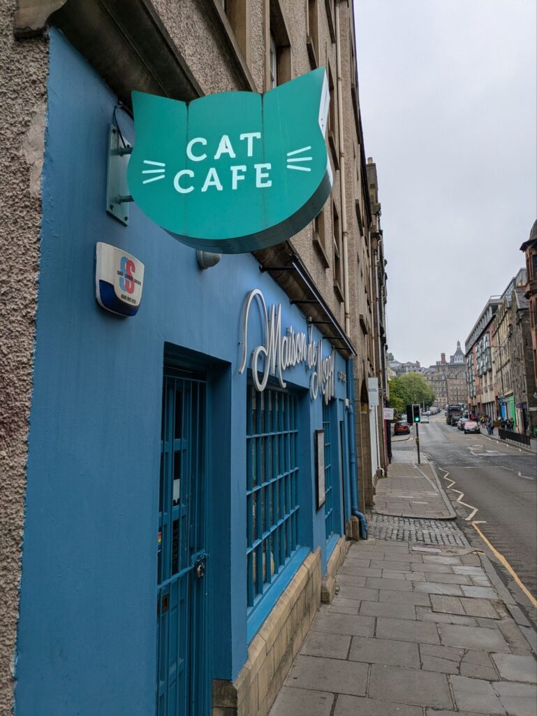 Anschließend haben wir uns etwas abseits der vielen Leute gehalten und sind einmal um den Burgberg (Castle Rock) gegangen und haben so interessante Dinge, wie Schottlands erstes Katzen-Café, gesehen.
