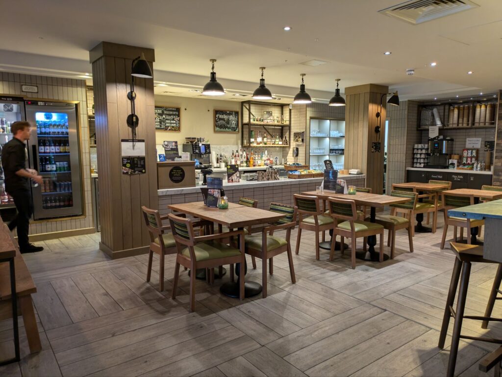 Abends wollten wir dann noch in einem Pub schön was essen und trinken. Wir sind also zum nächsten auf Google sehr gut bewerteten Pub marschiert. Wir setzten uns an einen freien Tisch, die Bedienungen ignorieren uns weitestgehend.  Plötzlich fällt mir ein, dass man in England im Pub sich seine Fressalien selbst an der Theke bestellen muss. Ich bin also hin, habe ein Pint und eine Cola bestellt und nach der  Essenskarte gefragt. Leider gibt es heute wegen einer Reservierung einer Gruppe von Leuten kein Essen für die Gäste, es bleibt also bei Bier und Cola.