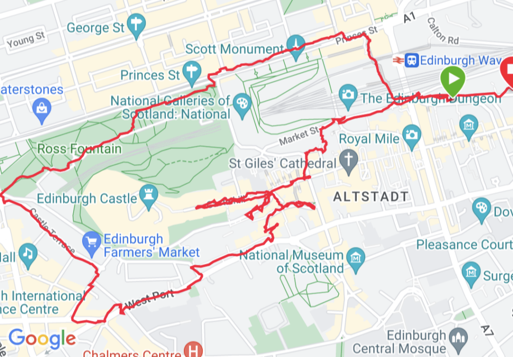 Anschließend bin ich mit Anja eine Runde durch die Altstadt gelaufen. Dabei haben wir uns erst einmal über einen von Polizei begleiteten Konvoi gewundert. Anja hat am Straßenrand Leute gefragt, wer oder was das ist und wir haben erfahren, dass Prince Edward da gerade an uns vorbei gefahren wird. Johann hat parallel auf Reddit gelesen, dass der Prinz (Duke of Edinburgh) gerade in der Stadt weilt.