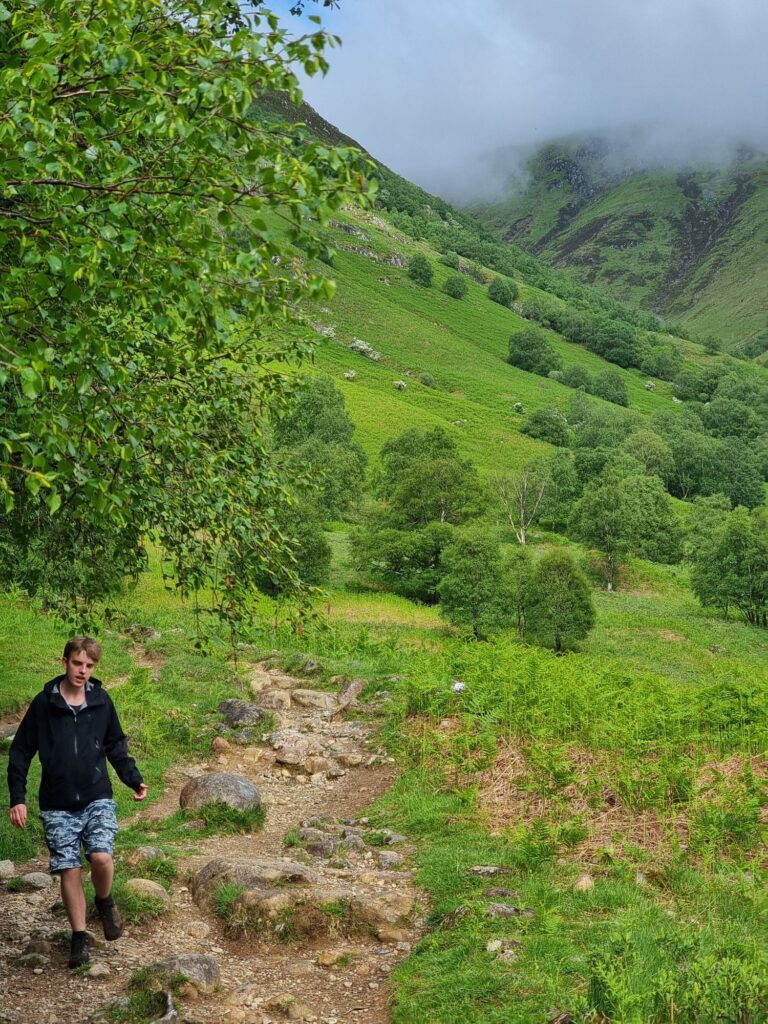 Da das Wetter recht trocken war – aber doch zu nass für die Drohne – sind wir zu dritt etwas bergan gelaufen. Fille zog es vor, in einem der beiden Etagenbetten zu chillen. Während dieser Tour hatten wir jedes Wetter (okay, nicht jedes, keinen Hagel, keinen Schnee).