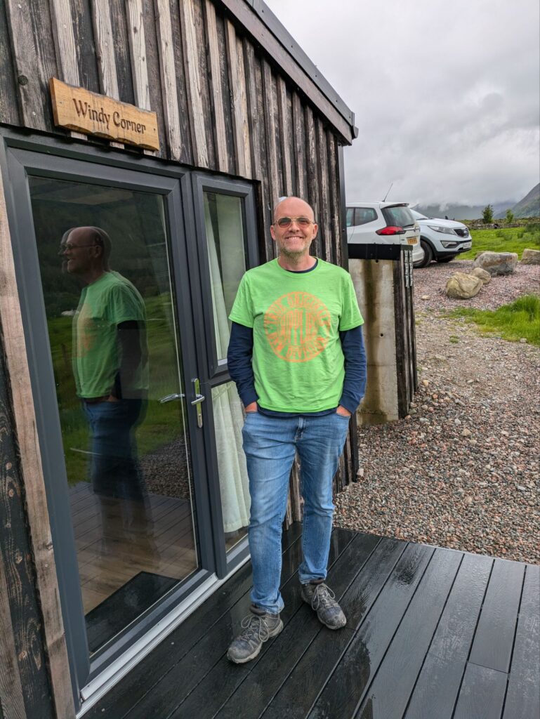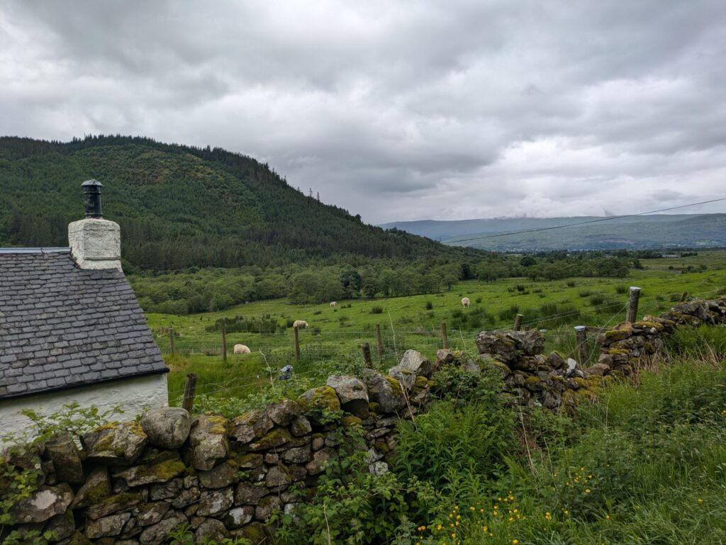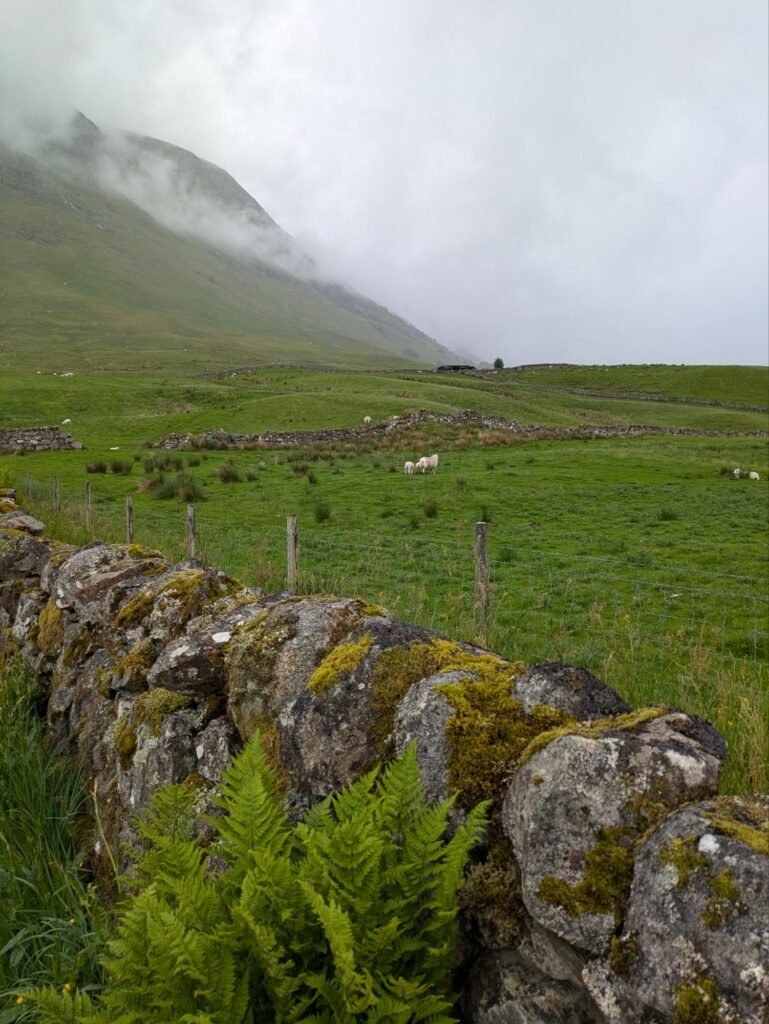 Unser 4er-Zimmer liegt am Ende einer Holzhüttenreihe am Fuße des Ben Nevis, mit Blick auf den imposanten Berg. Außerdem können wir Schafe zählen. 200.000 Menschen sollen angeblich jedes Jahr dort hinauf gehen, die Hälte davon schafft es bis zum Gipfel auf 1,345 m!