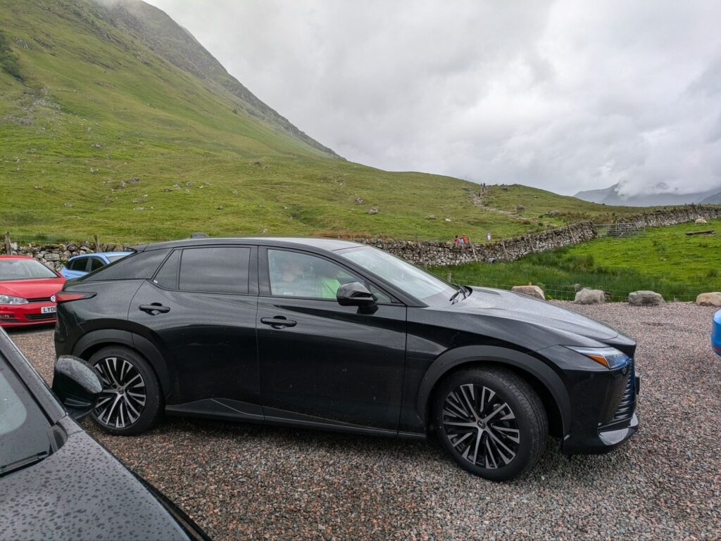 3. Stopp: Laden an einem Tesla-Lader in Fort William mit der üblichen Zitterpartie. Schlussendlich hat das Laden dann aber geklappt. Johann und Philip sind während dessen rüber zum Mäckes und Dirk und ich zum am Ende des großen Parkplatzes liegenden Lidl. Ausgegeben haben beide Seiten dasselbe. Unseres war nur viel mehr – und viel gesünder. 😅 Unser Mittagessen: Salat und Sushi.