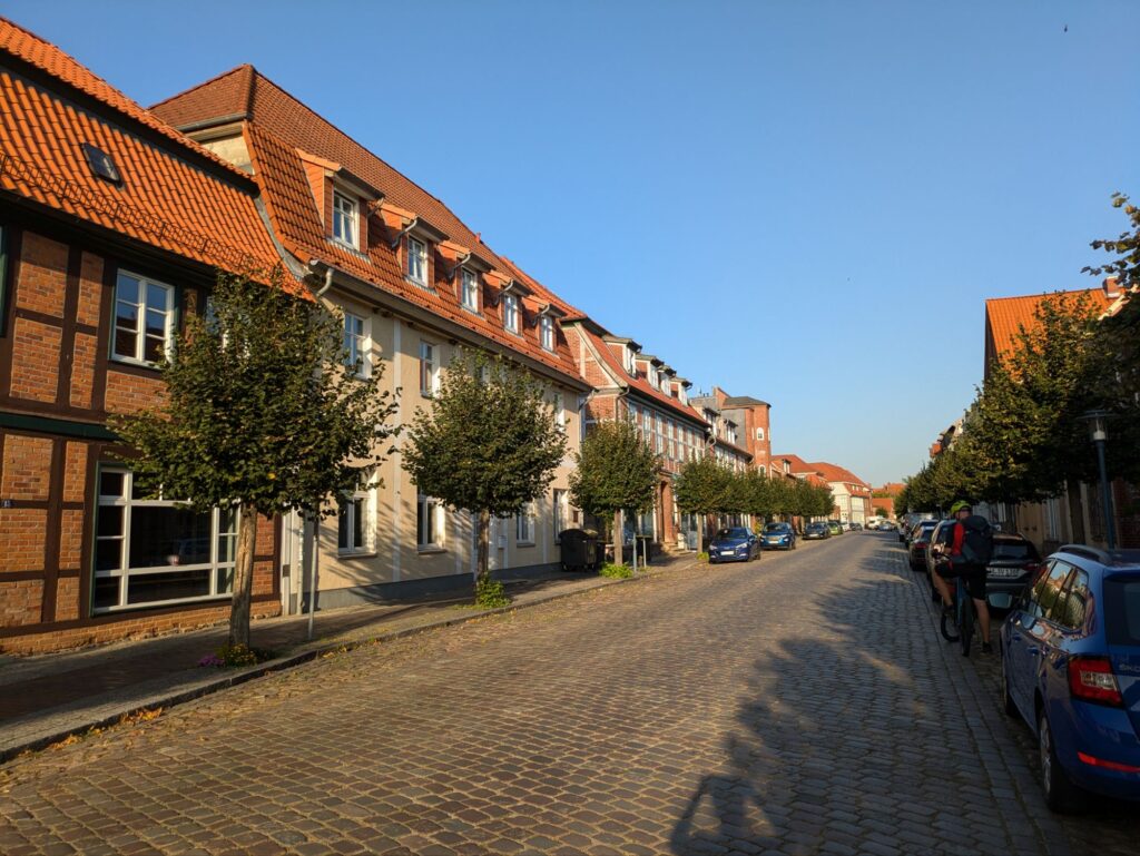 Nachdem wir alle Infotafeln gelesen hatten, radelten wir rein in das wunderschöne Städtchen Boizenburg mit seiner großen Altstadt mit den gut erhaltenen (renovierten) schmucken Häusern und den Kopfsteinpflasterstraßen.
