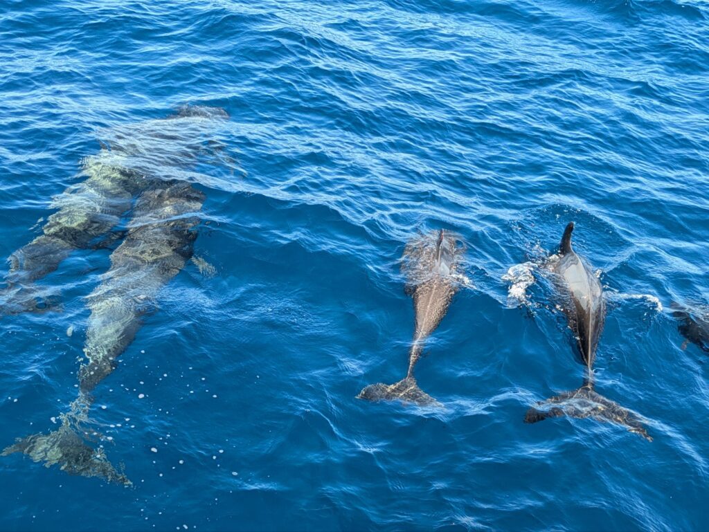 Wir haben eine ganze Menge Wale gesehen. So riesengroß sind die Grindwale nicht, die Männchen werden maximal 6-8m groß. Trotzdem war es spannend diese Tiere mal aus nächster Nähe zu beobachten. Seit 35 Jahren gibt es auch Teneriffa Walbeobachtungen mit dem Schiff. Die Wale haben sich an die Besucher gewöhnt und scheinen sie nicht als störend zu empfinden. Sie könnten ja einfach weg schwimmen, wenn sie keinen Bock drauf hätten.