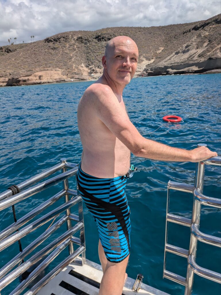 Pünktlich um 9:30 waren wir dann in Costa Adeje und haben uns zu unserem Anlagepunkt durchgefragt. Ich hatte mich beim Buchen für den Anbieter mit der besten Google und TripAdvisor Bewertung entschieden „Montecristo Catamaran“ und um Punkt 10 ging es dann mit etwas 20 Gleichgesinnten und 4 Besatzungsmitgliedern los.