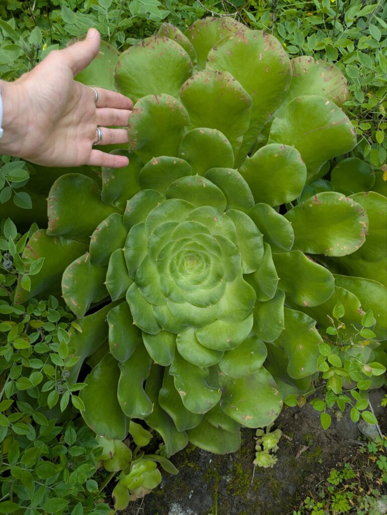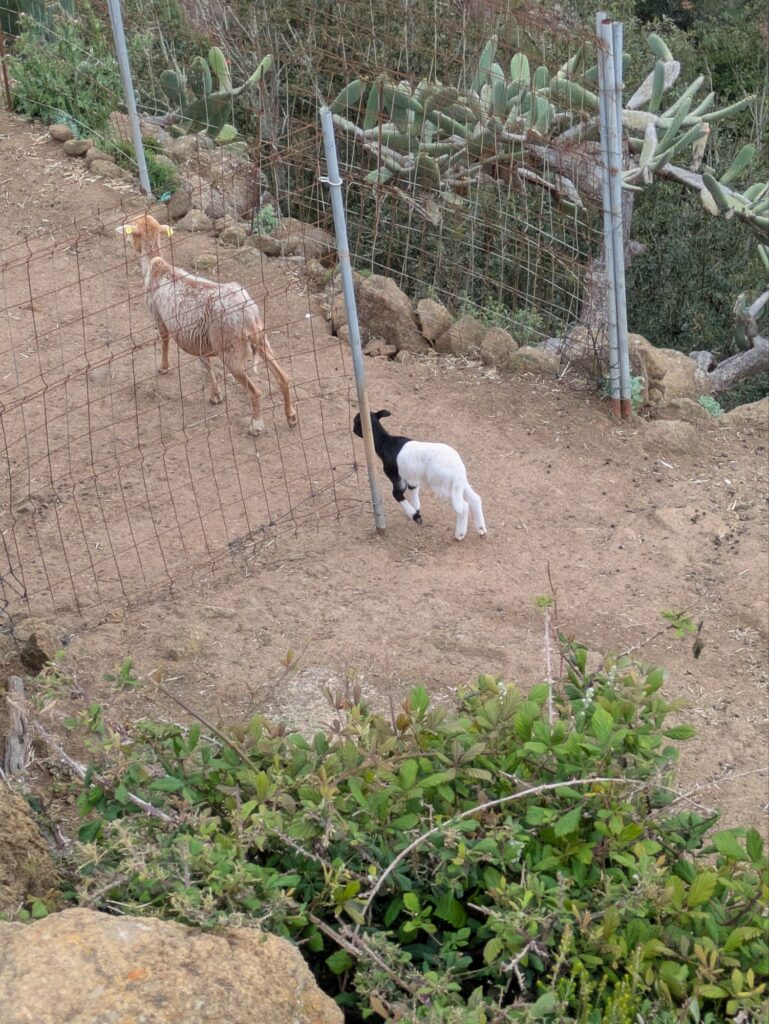 Wir sind dann über einen wunderschönen alten und schmalen Fußweg mit unzähligen ins Lavagestein gehauenen Treppen durch den Bergwald gelaufen. Ein paar andere Menschen haben wir getroffen, aber generell war es sehr ruhig. Unterwegs kamen wir an einer Finca mit Schafen und Ziegen vorbei, faszinierend, wie hier auf kargem Boden Mensch und Tier leben.