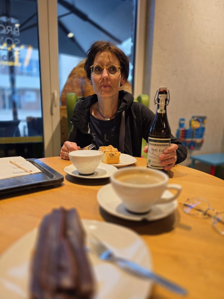 Nach einiger Zeit fing es leider an zu regnen, wir sind dann hier ins Café Exner auf Kaffee, Cappuccino, Eclaires und Rhabarberstreusel. So kann man es auch aushalten.