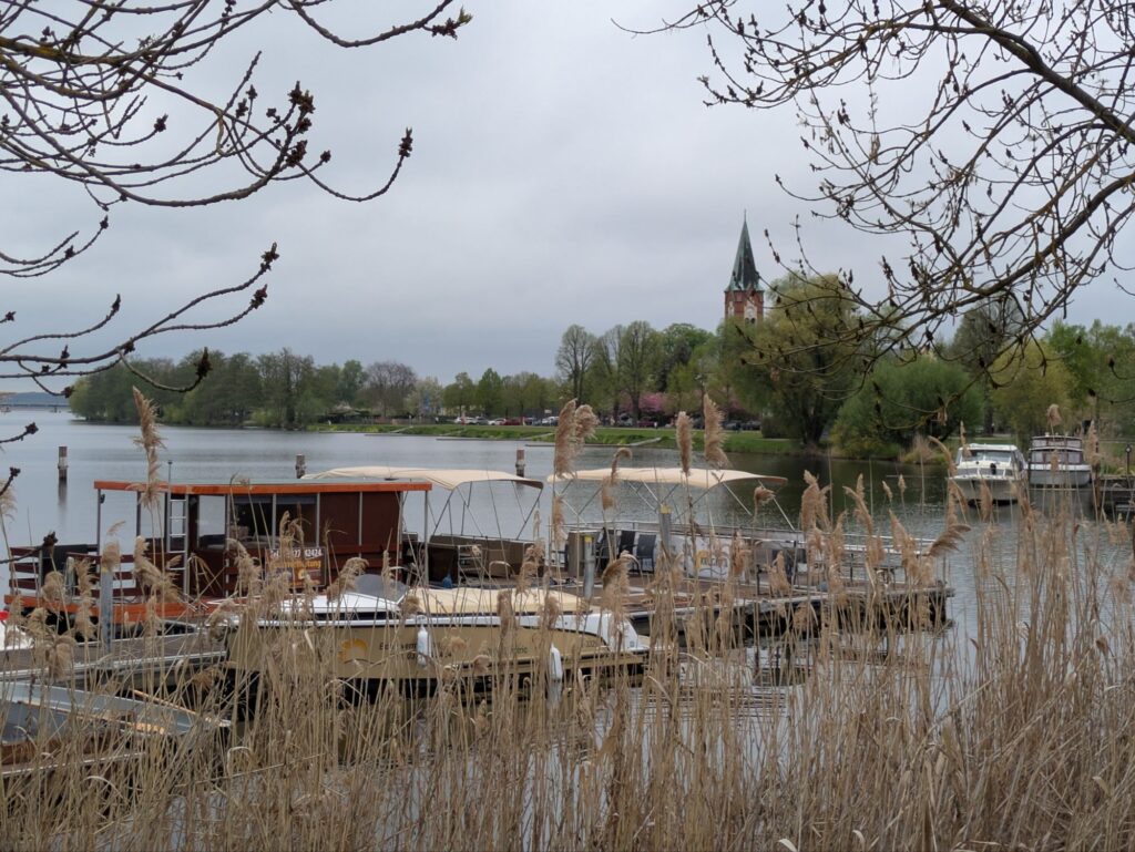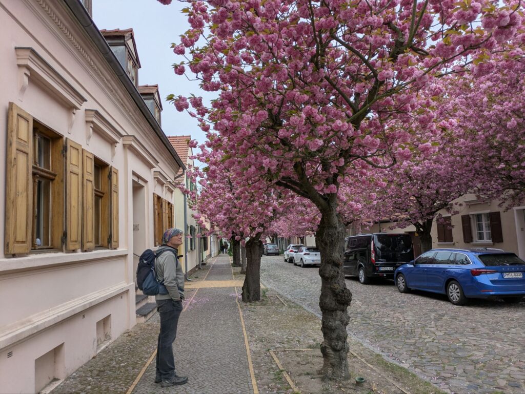 Anja wollte dann noch etwas sehen und wir haben beschlossen, nach Werder/Havel zu fahren. Die Altstadt dort, auf einer Insel gelegen, soll sehr sehenswert sein. Wir wurden auch nicht enttäuscht. Man hat das vor der Wende sehr heruntergekommene Städtchen sehr schön renoviert und herausgeputzt. Nur das trübe Wetter wollte nicht so ganz zu den rosa Kirschblüten passen.