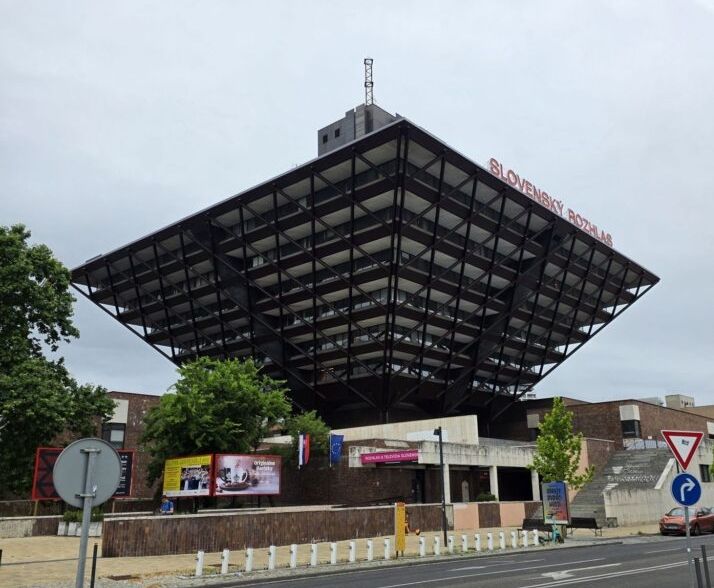 Nach duschen/rasieren/herumgammeln sind wir mit dem Bus in die Stadt zum „Haus des slowakischen Rundfunks“. Das Gebäude ist eine auf den Kopf gestellte Pyramide und gehört, nachdem es über viele Jahre wegen der modernen Architektur verteufelt wurde, mittlerweile zu den Wahrzeichen Bratislavas.