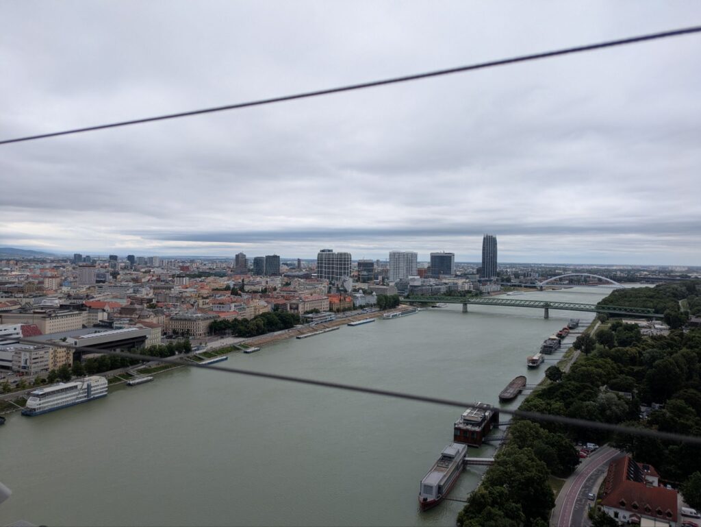 Dort sind wir dann noch hin und haben eine tolle Aussicht über Bratislava genossen. Nur der Wind war heute sehr stark, sodass wir Angst hatten, dort oben unsere Handys zu benutzen. Heute Abend wollen wir noch einmal hoch, das ist möglich, da es für 3,50 € Aufpreis die Möglichkeit zum zweiten Besuch innerhalb von 48 Stunden gibt.