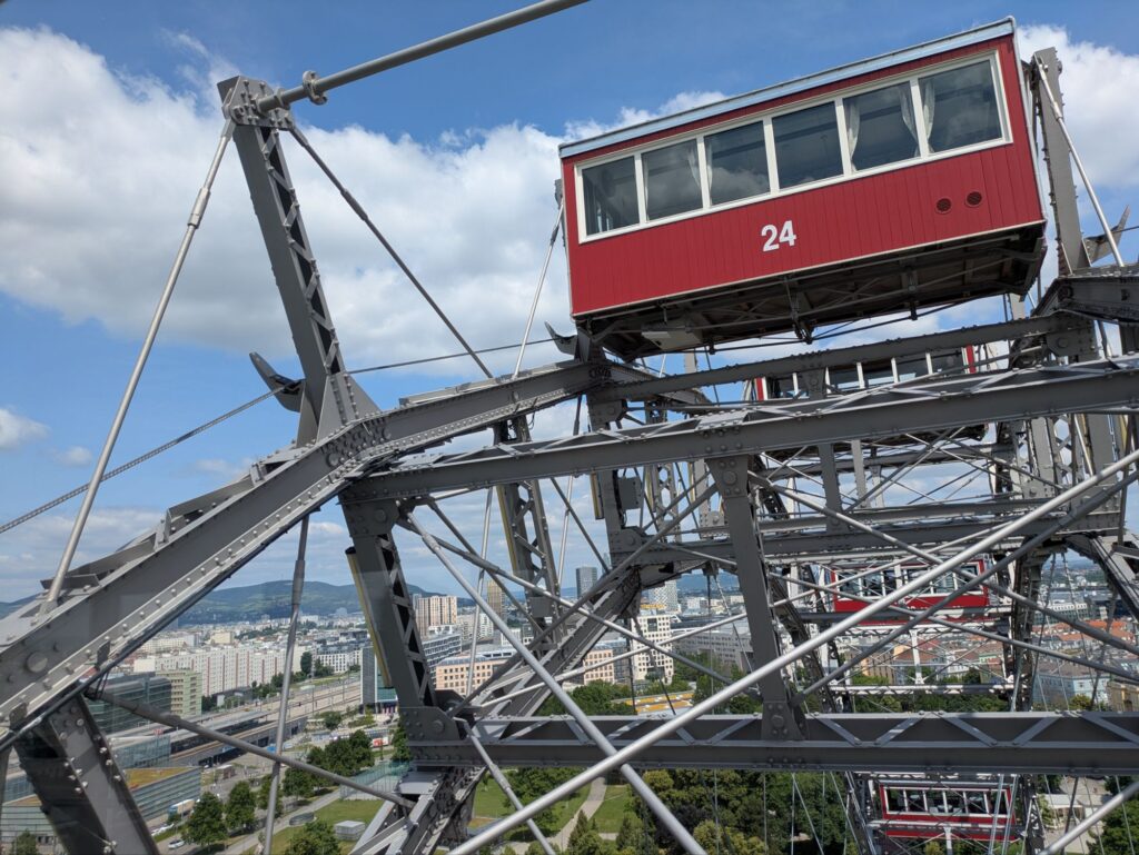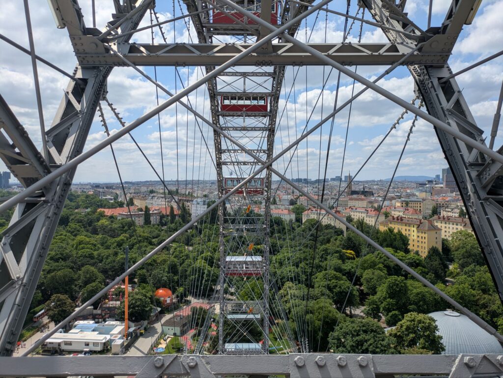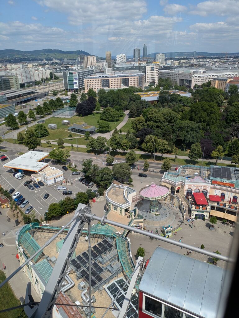 Das Riesenrad drehte langsam seine Runde und wir konnten ein paar schöne Blicke auf Wien werfen. So konnten wir uns schon einmal grob orientieren, wo die Innenstadt zu finden ist.