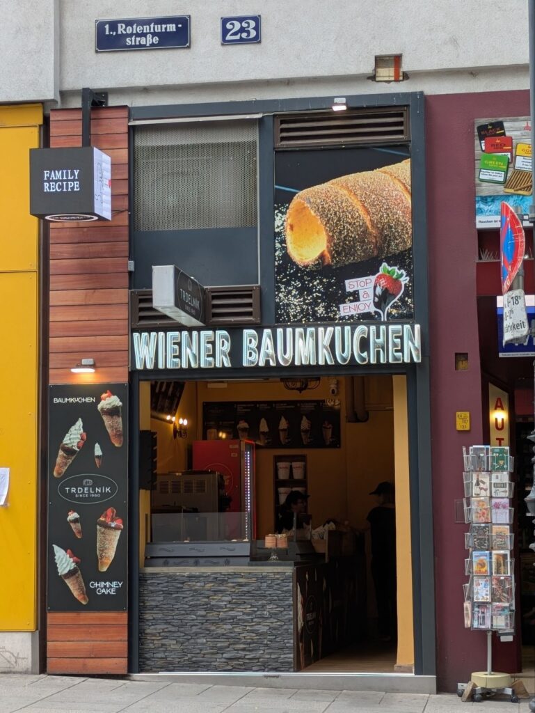 Dann sind wir endlich zum Baumstrietzel-Laden in der Rotenturmstraße 23 gelaufen („Wiener Baumkuchen“). Hier in Wien heißen Baumstrietzel zwar anders, nämlich Baumkuchen, aber alles andere passt.