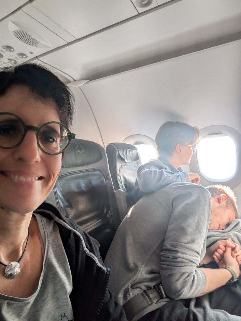 Um 5:30 Uhr sitzen wir tatsächlich alle im Auto und los geht es. Die Sonne ist noch nicht aufgegangen und wir sind in Erding am Flughafen, um unser Auto zu parken. Mit ausreichend Luft checken wir ein, es gibt am Schalter etwas Gemeckere von der Lufthansa, weil mein Koffer 2 Kilo zu schwer ist, aber letztendlich kann ich ihn, ohne Aufpreis zu zahlen, aufgeben. 8 Klio für einen Handgepäckkoffer ist grenzwertig knapp, mein Alukoffer wiegt leer schon 3 Kilo.