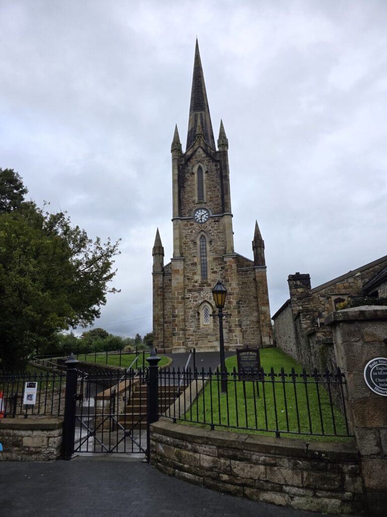 Wir starten an einem Parkplatz mit einem Mahnmal für eine der schlimmsten Hungersnöte zwischen 1845 und 1849 hier in Irland. Die Kartoffelernte war mehrmals hintereinander ausgefallen und durch eine gleichzeitig durchgeführte Liberalisierung der Wirtschaft starben etwa eine Million Menschen, was damals etwa 12 % der irischen Bevölkerung entsprach.