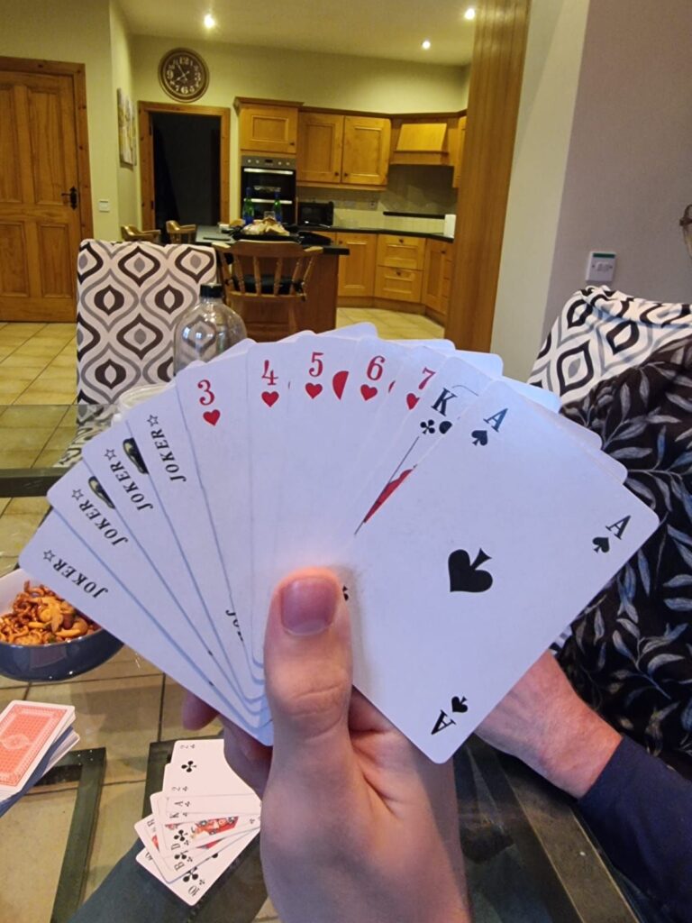 Zurück hier in unserer geräumigen, aber fußkalten Wohnung haben wir mit Philip noch ein paar Runden Rommé gespielt. Anja hat uns heute alle abgezockt. Aber ein Mal hat Fille doch gewonnen.