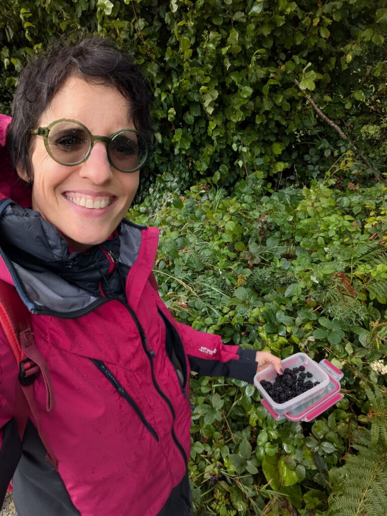 Zuerst ging der Weg an einer wenig befahrenen Straße entlang. Unterwegs haben wir noch Brombeeren gesammelt, die teils so reif-süß waren, dass sie uns direkt in die Hände fielen.