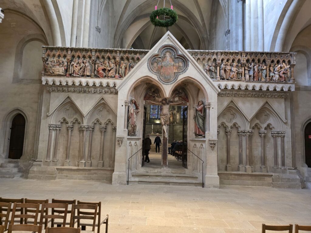 Dann war unser erstes Ziel heute der Dom zu Naumburg. Wir waren etwas verdutzt, dass man in einer Kirche Eintritt zahlen muss, aber die 9,50 € pro Nase inkl. Audioguide waren topp investiertes Geld. Der Dom aus dem 13. Jahrhundert ist bestens erhalten, die Stifterfiguren, wie die von Ekkehard II. und Uta sind weltbekannt. Insgesamt waren wir fast 3 Stunden im Dom. Der Audioguide hat uns viele Dinge erklärt, die wir sonst überhaupt nicht wahrgenommen hätten. Wir wissen jetzt wieder viel mehr, was wir gleich wieder vergessen werden.
