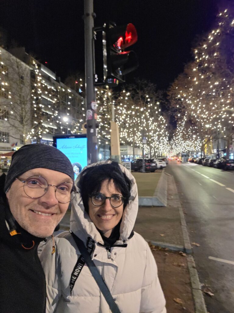Gegen 16:00 Uhr waren wir vor Ort, es war gerade am dunkel werden. Außerdem war es ziemlich feucht. Es war sehr kalt und von oben vielen dicke Regentropfen, die auf den Wegen und Straßen zu Eis gefroren. Wir haben uns die fast menschenleere Altstadt angeschaut und sind erst einmal auf Glühwein, Cappuccino und Eis in ein schönes Café zum Aufwärmen. Wenigstens waren dort noch andere Leute.
