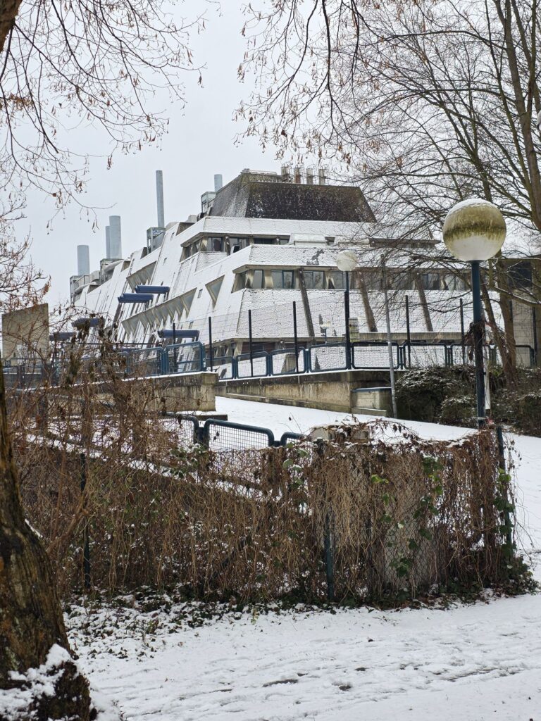 Dann fahren wir mit dem Auto zum UKBF, dem Universitäts-Klinikum-Benjamin-Franklin. Anja hat dort vor langer Zeit ihre Doktorarbeit gemacht und leider liegt dort gerade meine Patentante Ulrike, die wir dann auch besuchen wollen. In der Nähe vom UKBF hängen wir das Auto an eine Extrem-langsam-Ladestation, sie startet mit 1,5 kWh und hangelt sich auf 4 kWh hoch 😅 – normal wären 11 kWh. Aber egal, wenigstens kostet das Parken nichts.