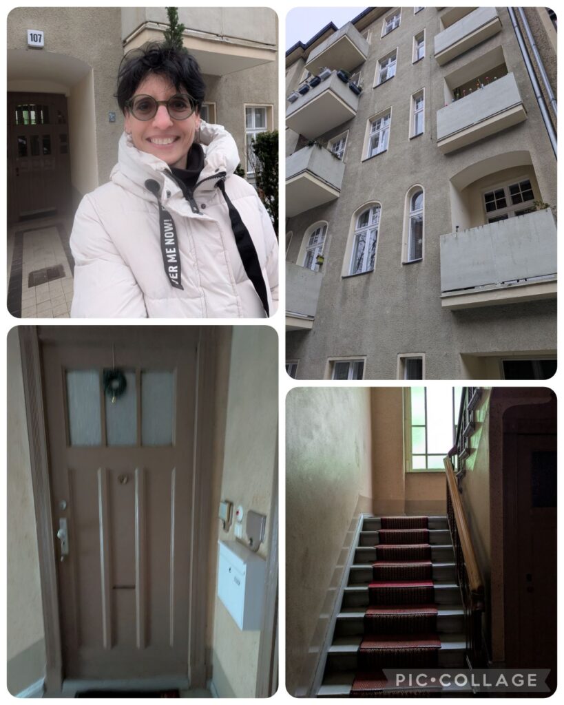 Im Anschluss fahren wir bei bei meiner alter Wohnung vorbei in der Lauenburger Str. 107 (nicht 108!). Ich klingele bei meiner alten Haus-Mittbewohnerin und Kollegin aus dem Labor in Mitte (damals absoluter Zufall, dass wir in einem Haus wohnten!). Ich klingele auf Verdacht – und die inzwischen 80-jahrige Johanna Golla ist da! Ne knappe halbe Stunde bin ich daraufhin im Haus verschwunden, während Dirk im Auto wartet. Es war so schön, Johanna so herzlich, hat viel erzählt von den Bewohnern und dem Vermieter, den ich auch noch kenne (griesgrämig wie eh und je), von ihren überstandenen zwei Krebserkrankung, von ihren Japanplänen. Ihre Wohnung, so geschnitten wie meine damals, zwei Stockwerke drüber, ist wunderschön und hell und gemütlich. Sie zahlt noch 450 Euro Kaltmiete (+ 200 Euro Nebenkosten) für 55 qm, weil ihre Vertrag vor vielen Jahren noch auf Kohle-Ofen-Basis lief! Ich hatte damals einen Nachtspeicherofen, der musste aber raus wegen Asbest, sagte Johanna.