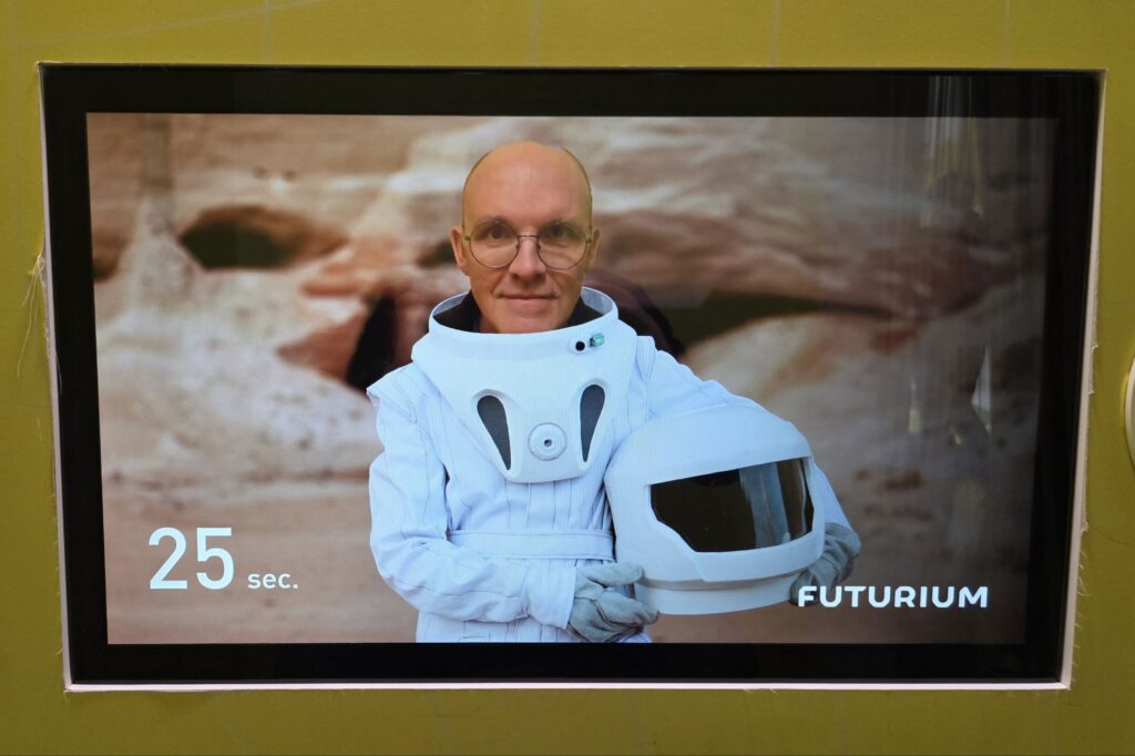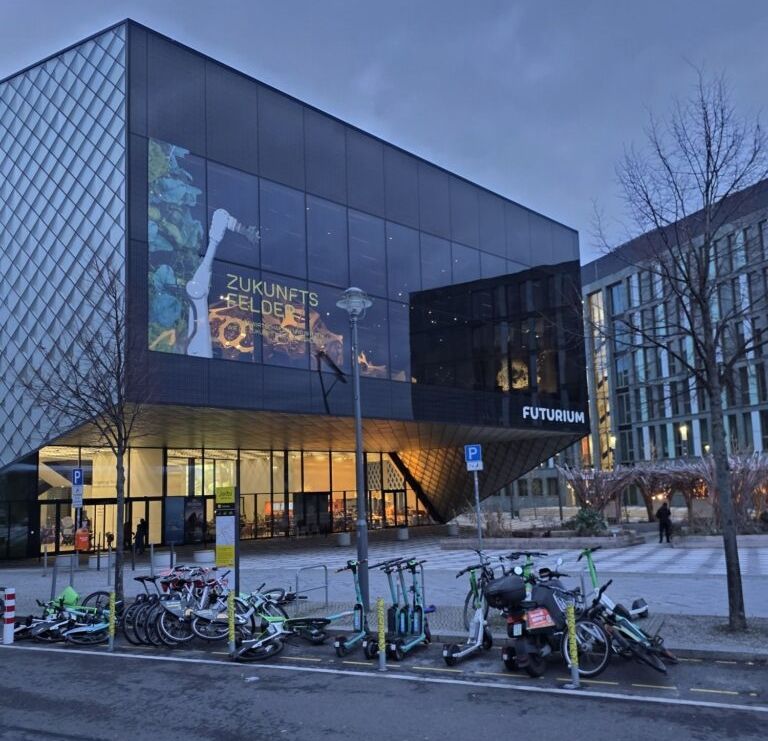 Am Bahnhof Zoo angekommen gönnten wir uns im McDonalds Kaffee, Cappuccino und Käsekuchen – leider geil. Anja hatte dann über Instagram von einem neuen, modernen und interaktiven Museum erfahren, dem FUTURIUM. Außerdem ist der Eintritt frei. Das Museum behandelt unsere Zukunft, wie wir in 30 Jahren vielleicht leben und welche Probleme bis dahin gelöst werden müssen. Wir fanden das so spannend, dass wir nach über 2 Stunden plötzlich von den Wächtern herausgerissen wurden, als das Museum um 18 Uhr schloss.